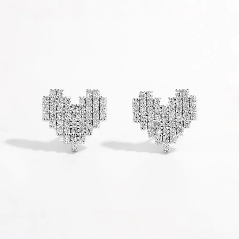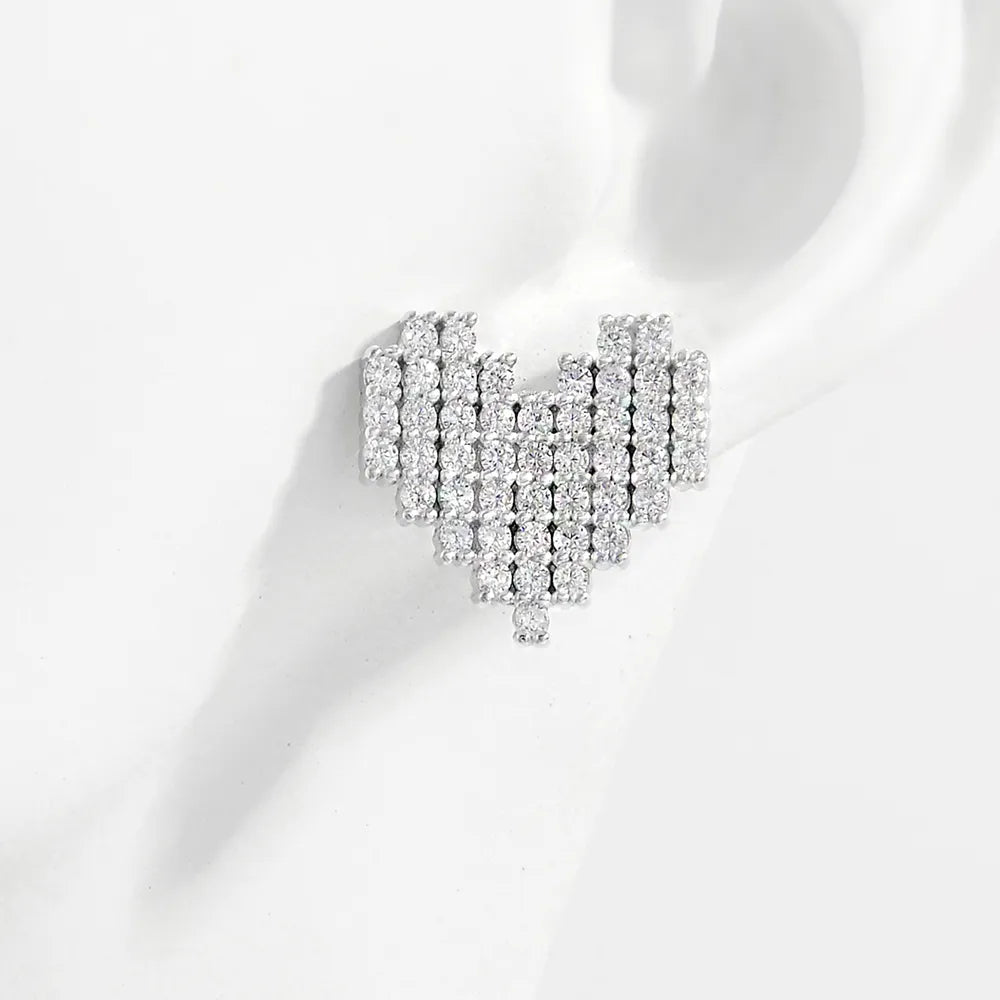925 Sterling Silver Inlaid Zircon Heart Stud Earrings