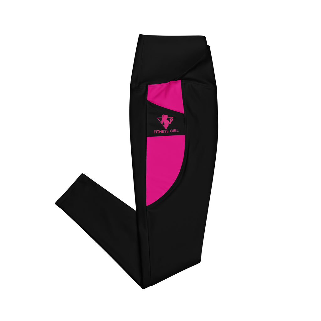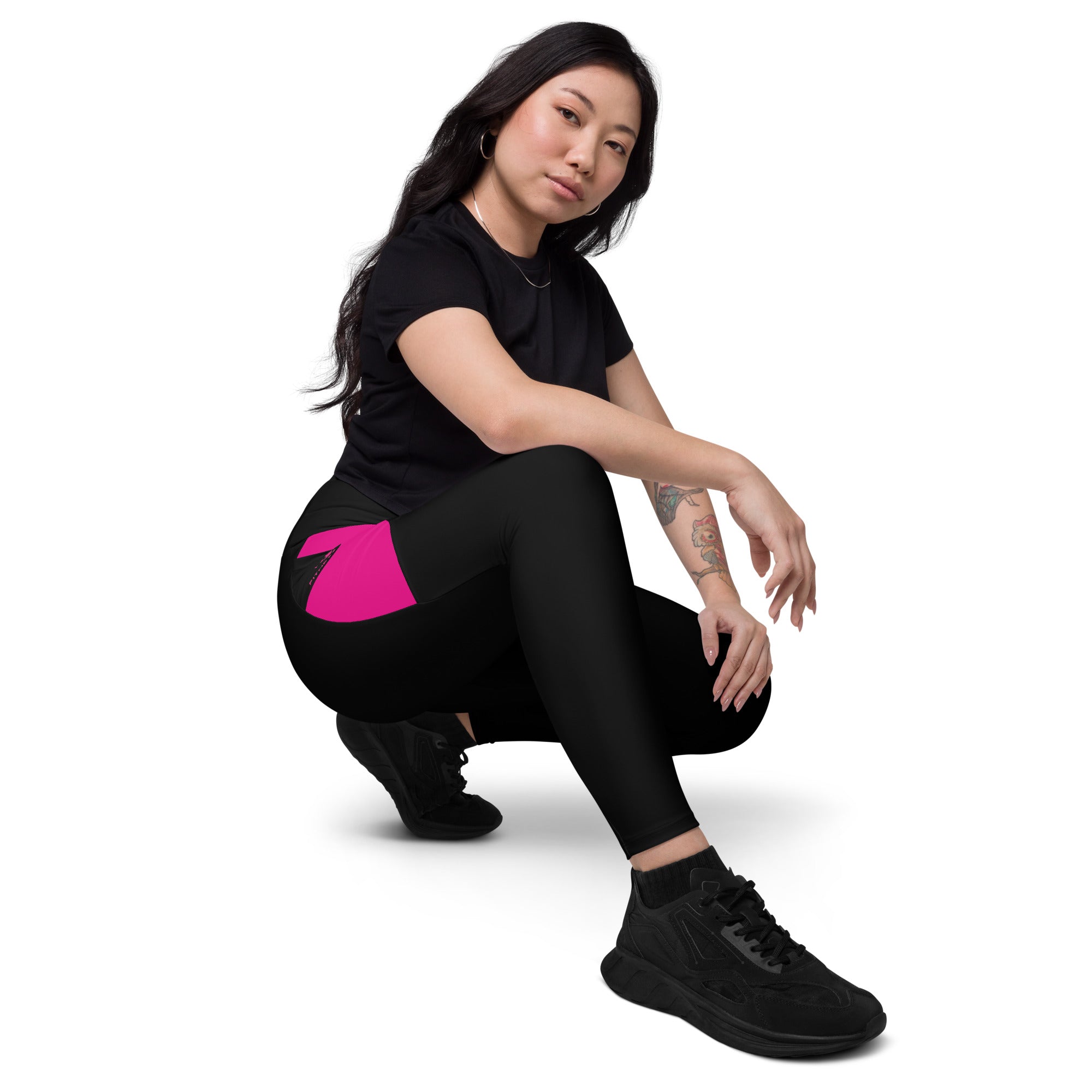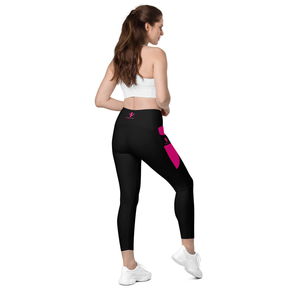 Black and Pink Fitness Girl Crossover leggings with pockets