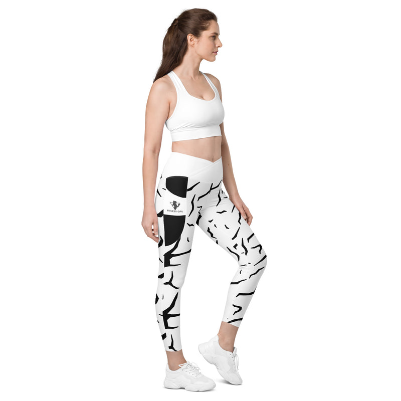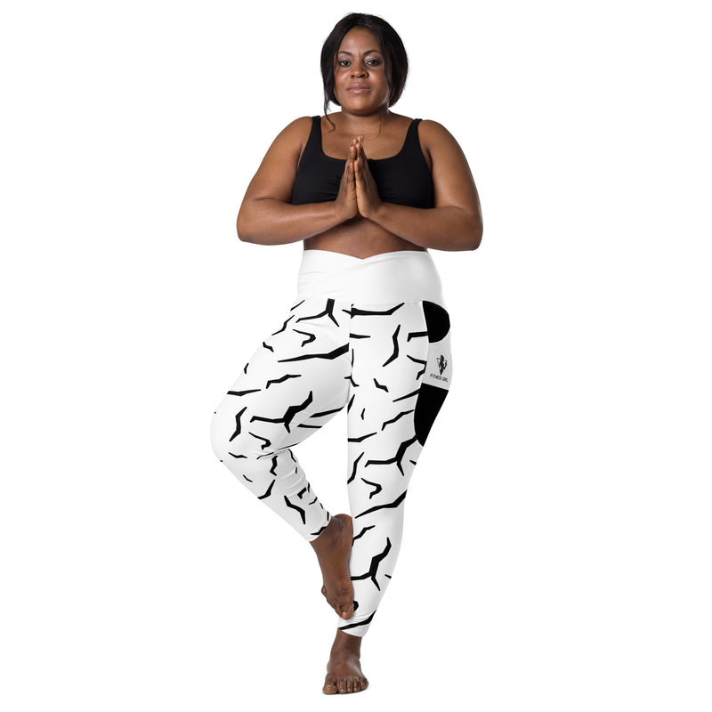 Black Cracked Print Fitness Girl Crossover leggings with pockets