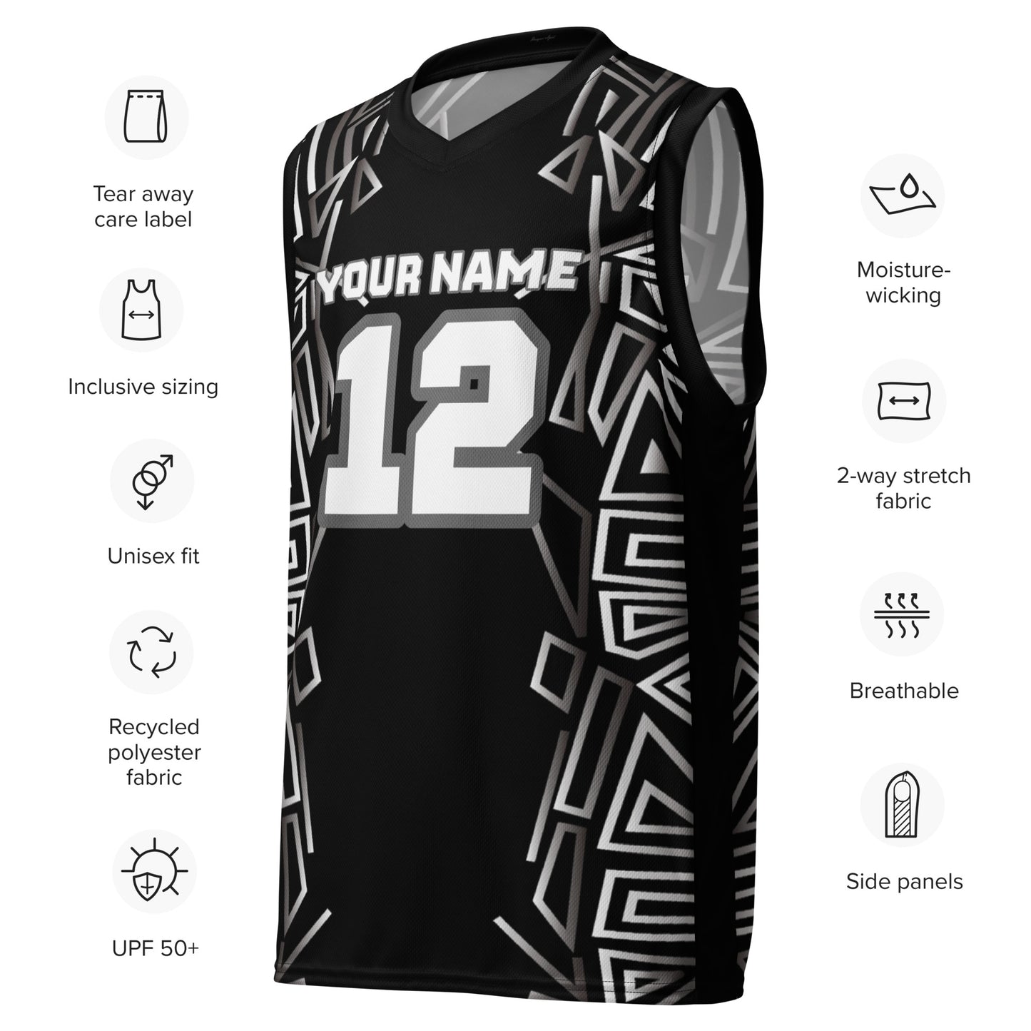 Add your name and number. Looking for a basketball jersey that will take your game to the next level? Look no further! Made with recycled polyester fabric, this high-tech jersey is designed to keep you cool and dry even in the heat of competition. Style it as a streetwear piece and turn heads both on and off the court.