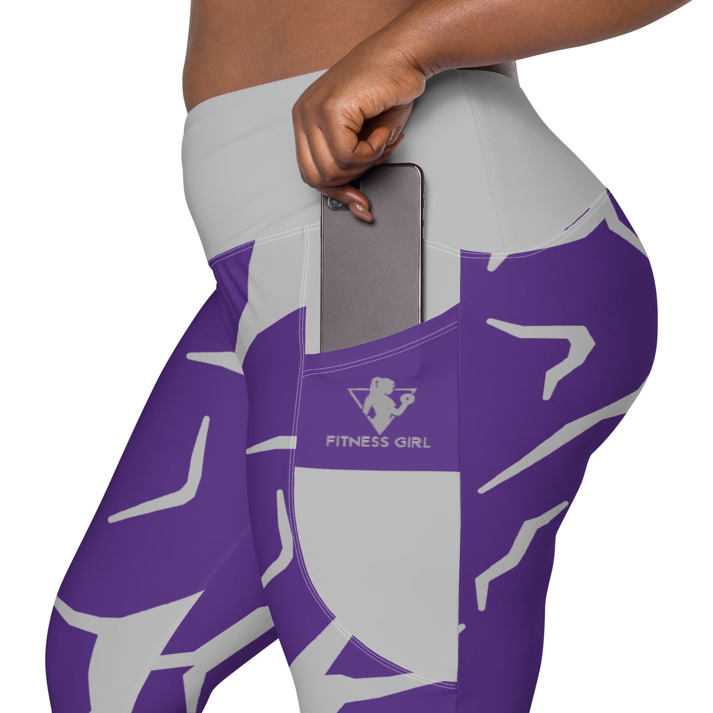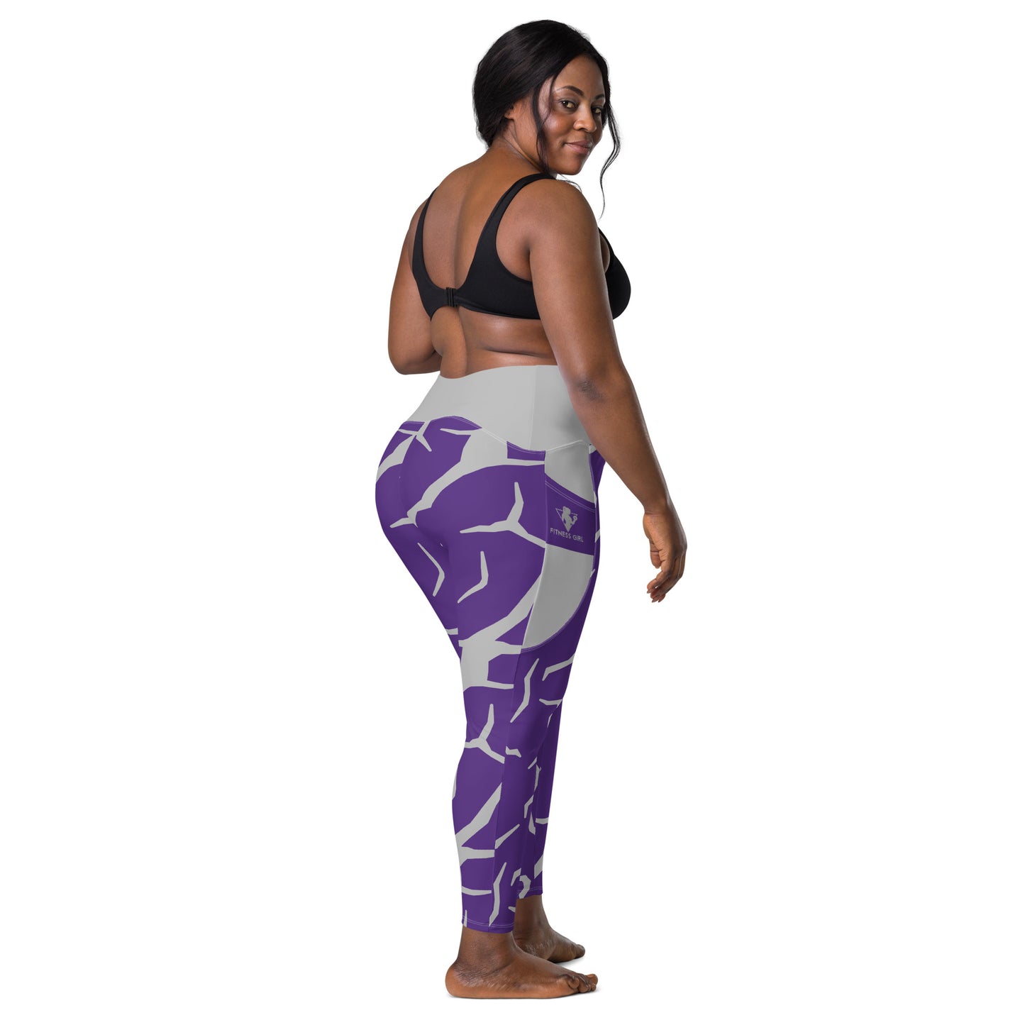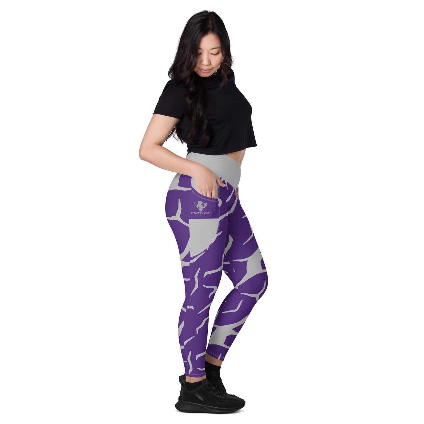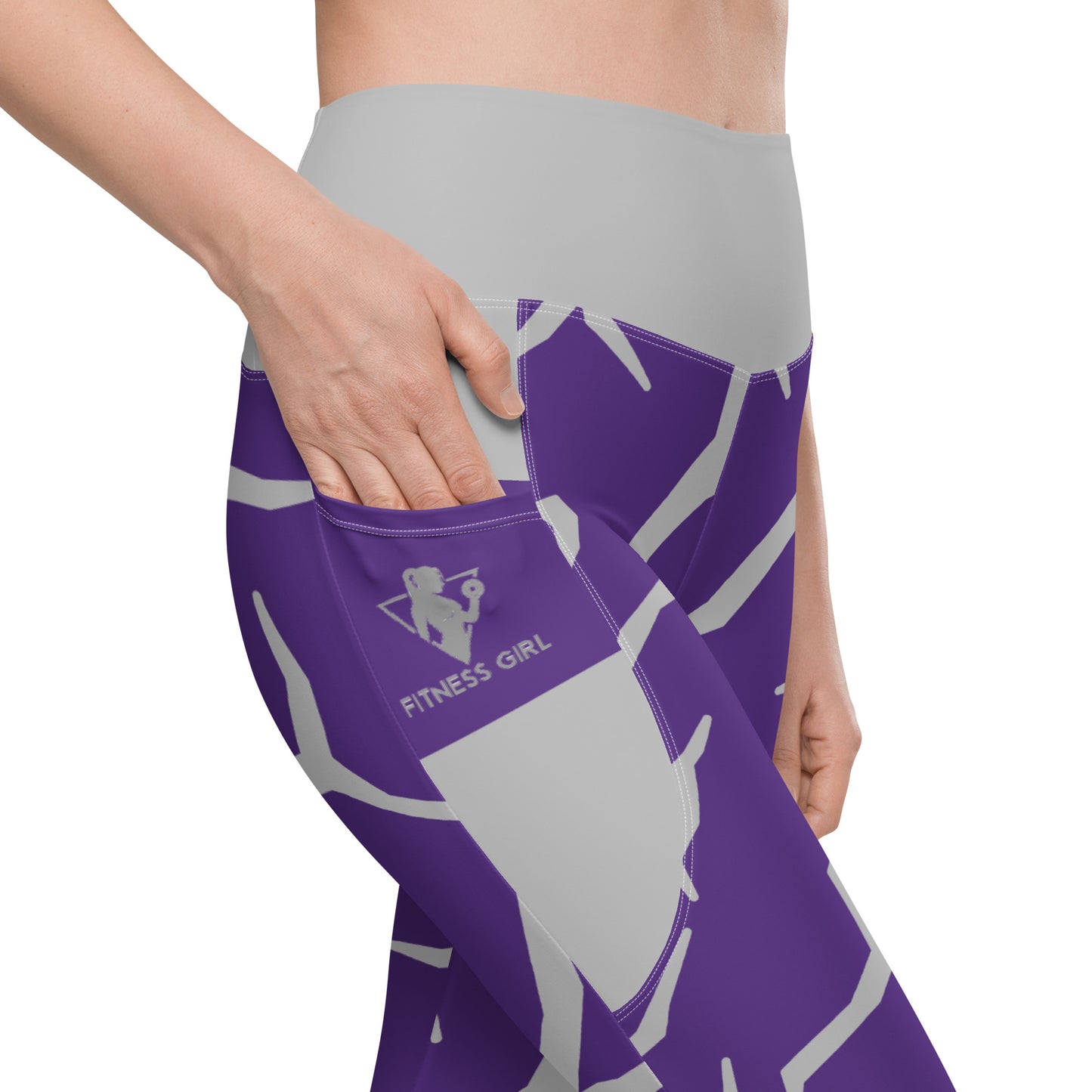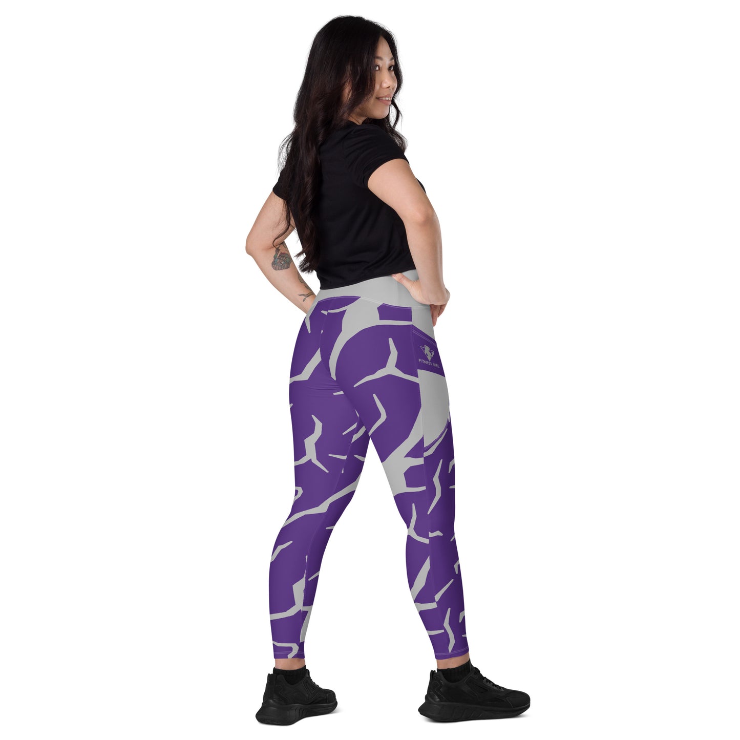 Purple Print Fitness Girl Leggings with pockets
