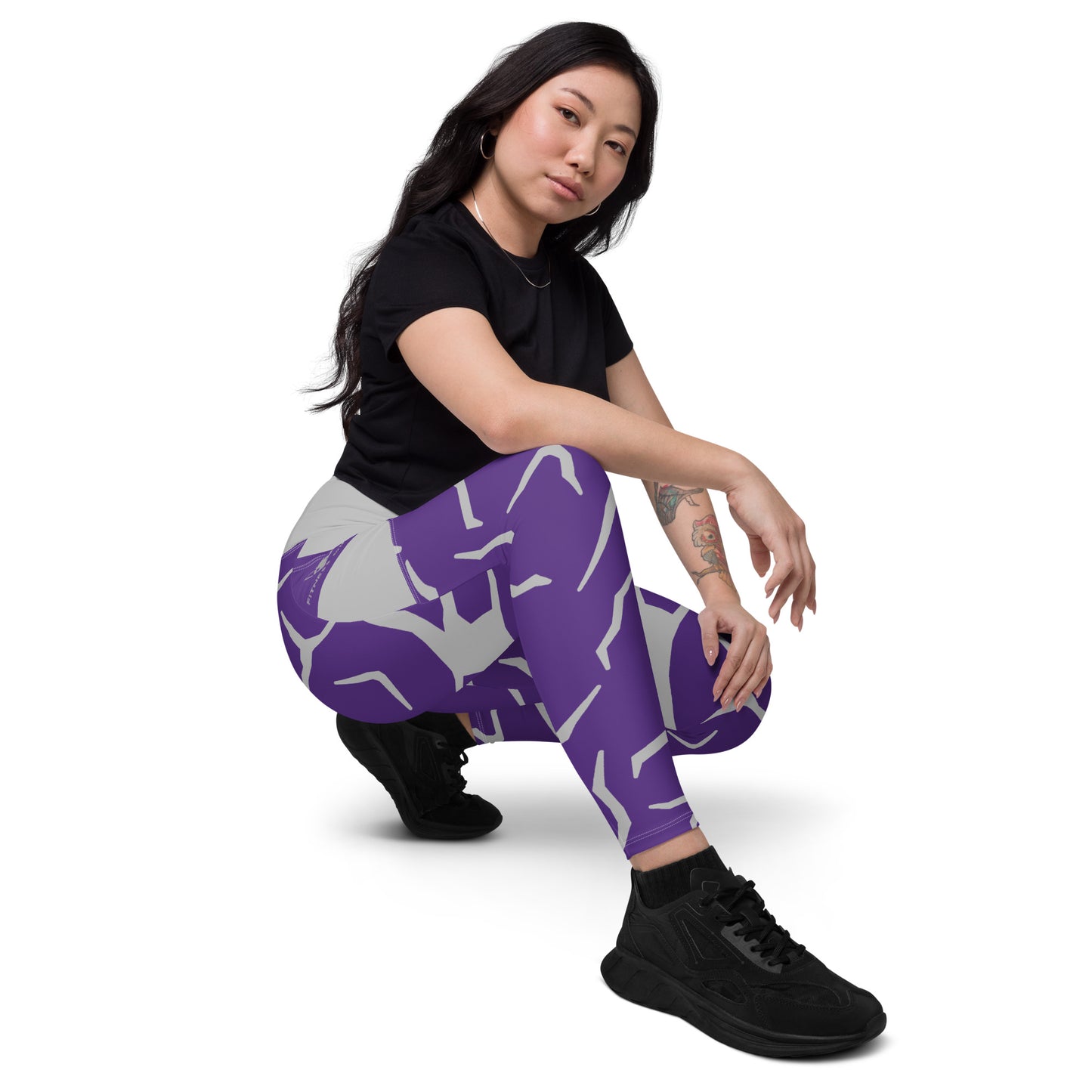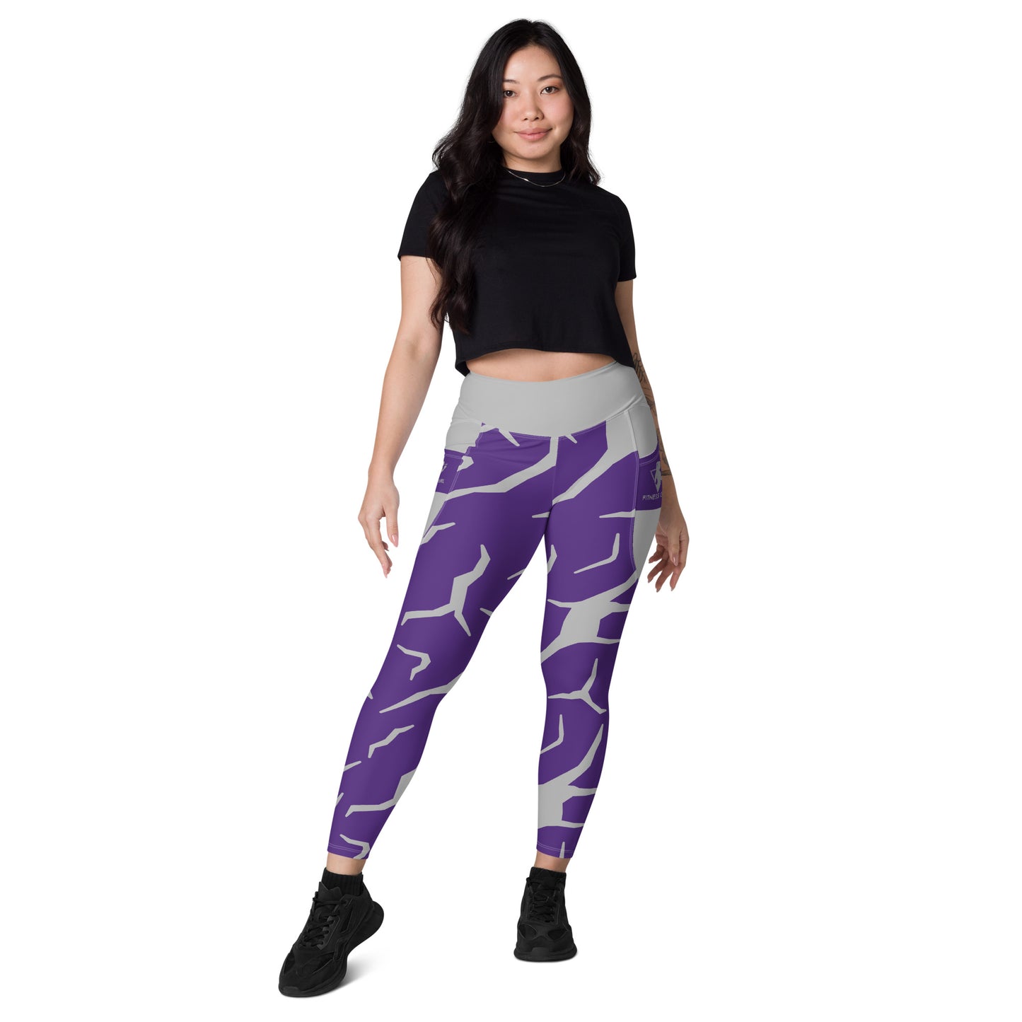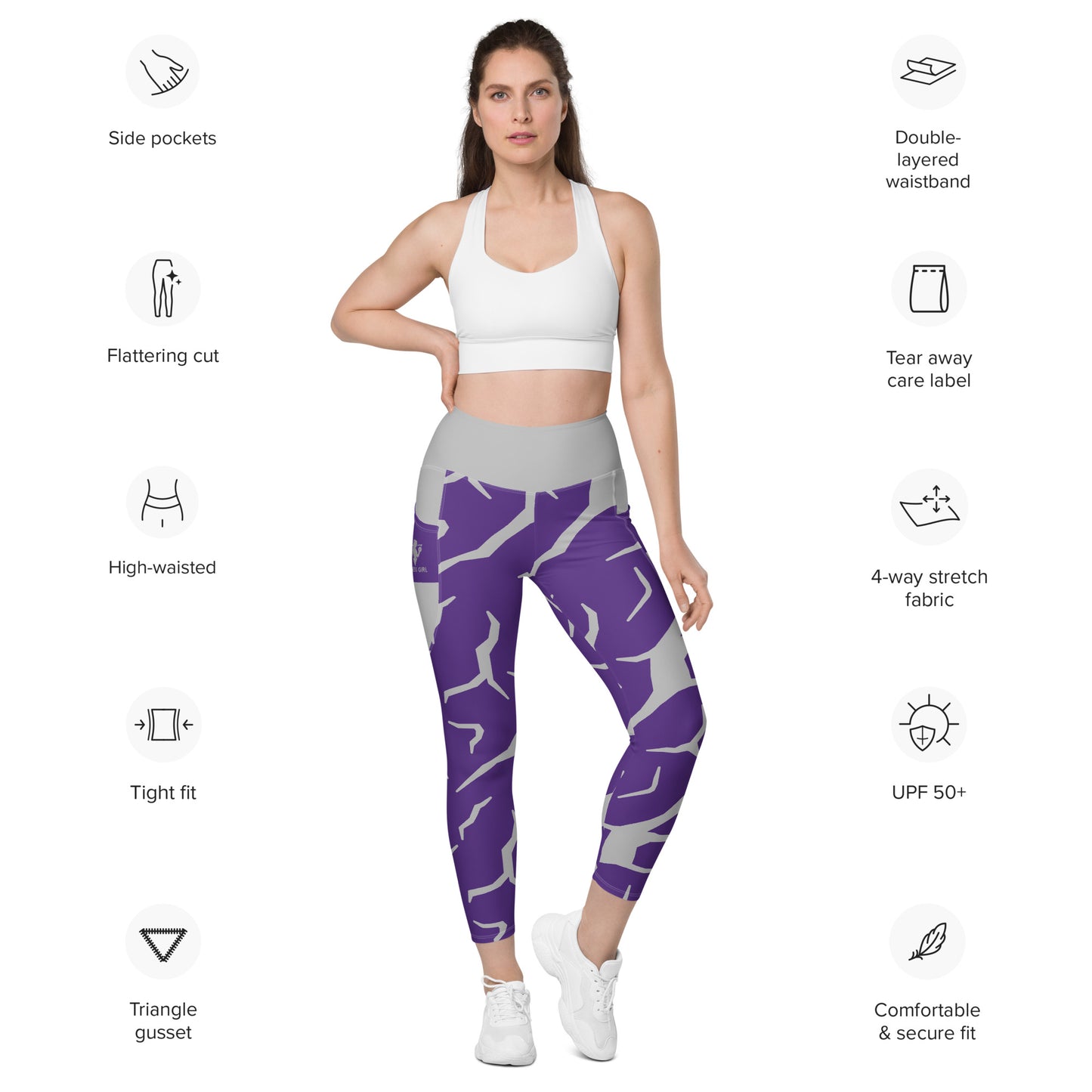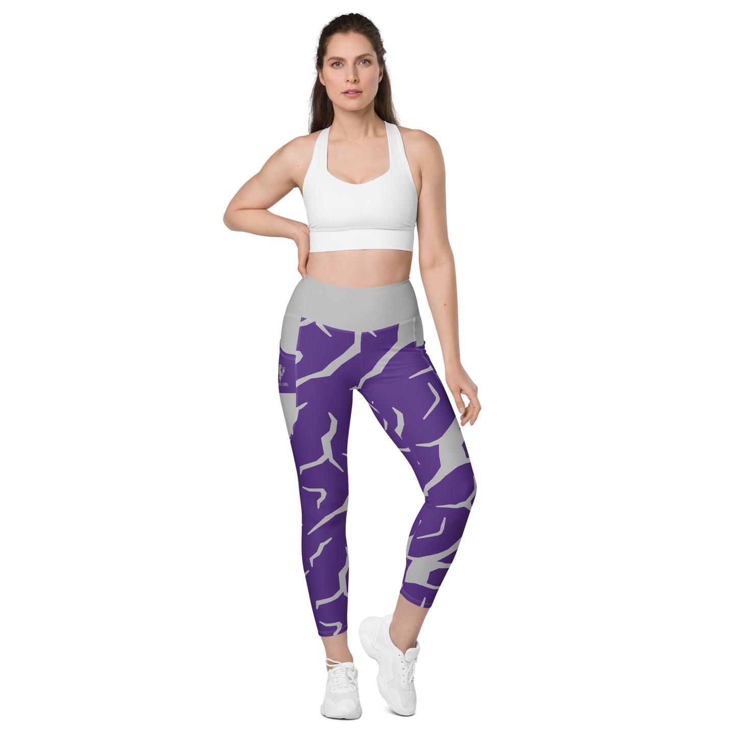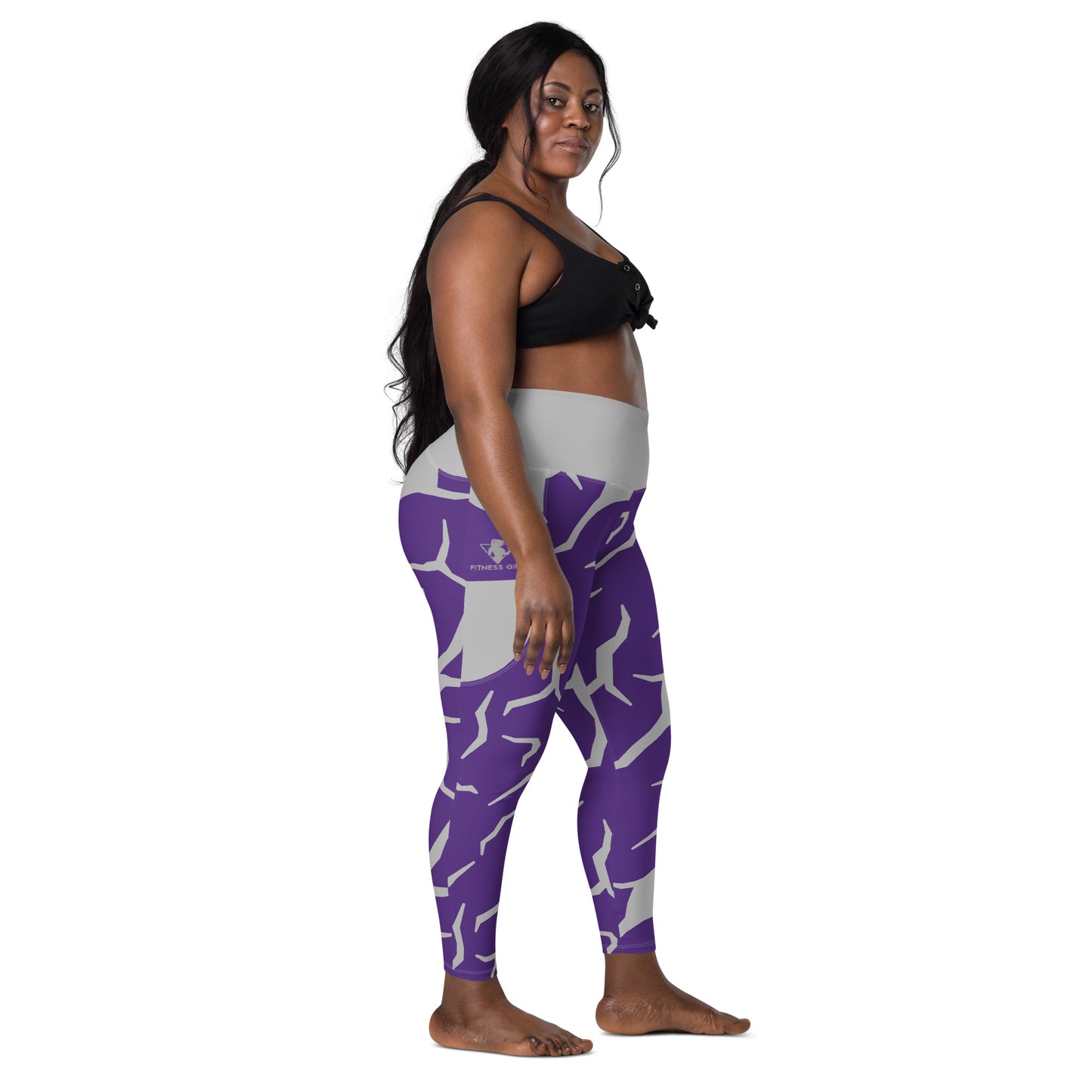 Purple Print Fitness Girl Leggings with pockets